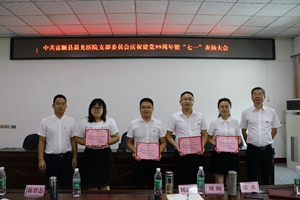 表扬先进传递正气。本次“七一”表扬活动,分别从行政党小组、临床党小组、医技党小组评选出了10名优秀党员,副院长、党支部组织委员刘志祥宣读了表扬文件,院领导分别上台为获奖者颁发了荣誉证书。