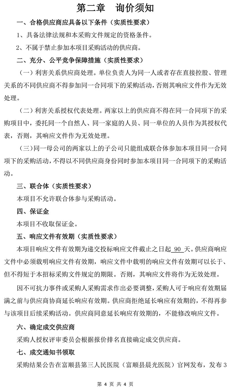 富顺县晨光医院中心供氧设备及配套设施采购项目询价采购公告