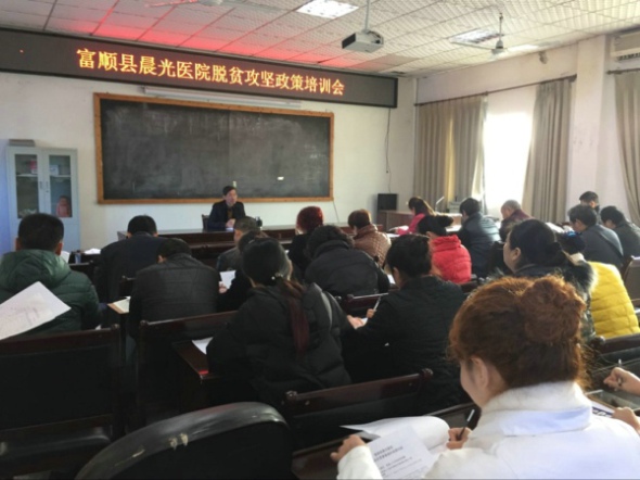 为进一步保证脱贫攻坚各项工作的顺利实施,且保证全院职工对扶贫政策的了解,我院于今日上午10时在医院大会议举行了“卫生扶贫需要掌握的政策内容”的培训会。会议由刘志祥书记主持。会议内容有四部分组成。一是贫困人口卫生扶贫政策:主要了解卫生扶贫的对象范围、任务、提升建档立卡贫困人口医疗保障水平、落实“先诊疗后结算”制度、严格执行分级诊疗、贫困人口医疗保障时间等等共十个问题做了详细的解读。二是对计划生育特殊家庭的政策解读。三是我院扶贫工作的对象即对贫困人口以及贫困村卫生、计生特殊家庭的帮扶问题。四是对各科主任护士长的工作提出要求。会后大家踊跃发言,就如何保证脱贫攻坚工作的完成献计献策,充分体现了晨医人团结一致、勇献爱心的精神。