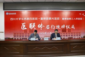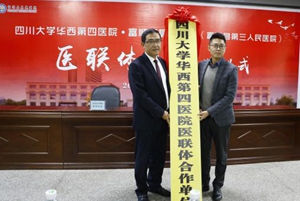 金秋送爽,丹桂飘香。10月31日上午,四川大学华西第四医院·富顺县晨光医院医联体签约授牌仪式在富顺县晨光医院举行。来自华西第四医院的9位专家,县领导汪晓东、李世超,县卫健局党委委员马小评、医政股股长刘梅莅临活动,医院全体院领导,部分职能部门、临床、医技科室负责人参加。副院长涂李主持签约仪式。 首先,县卫健局党委委员马小评致辞,对四川大学华西第四医院专家的到来表示了欢迎,强调了县卫健局对医联体建设的重视和肯定;富顺县晨光医院党支部书记、院长黄永生对我院发展情况、医联体合作情况进行了介绍。 随后,四川大学华西第四医院与富顺县晨光医院签订了《医联体合作协议》,华西第四医院副院长杨罗为我院授牌。 县人大副主任汪晓东代表县四家班子向各位领导、专家表示了诚挚的欢迎,对两院正式建立医联体合作表示了祝贺并给予了肯定,对今后发展提出了期望和建议;四川大学华西第四医院副院长杨罗表示,四川大学华西第四医院与富顺县晨光医院,在发展规划上有相似性,在学科建设上有互补性,地理区位商衔接紧密,华西第四医院将充分发挥和整合专业优势,促进两家医院医疗技术的整体提高,共商共谋,推动医联体的共同发展和繁荣,更好地为群众提供优质的医疗服务。 最后,在富顺县晨光医院院内,四川大学华西第四医院的专家们携手富顺县晨光医院的医务人员为前来咨询的群众进行了联合义诊。 本次活动,标志着我们两院的友好合作踏上新的征程,我院将在华西第四医院的指导下,抓住机遇,在管理、临床、教学、科研等多个领域开展深度合作,实现优质医疗资源下沉及共享,提升我院整体能力和水平,更好地服务广大人民群众。