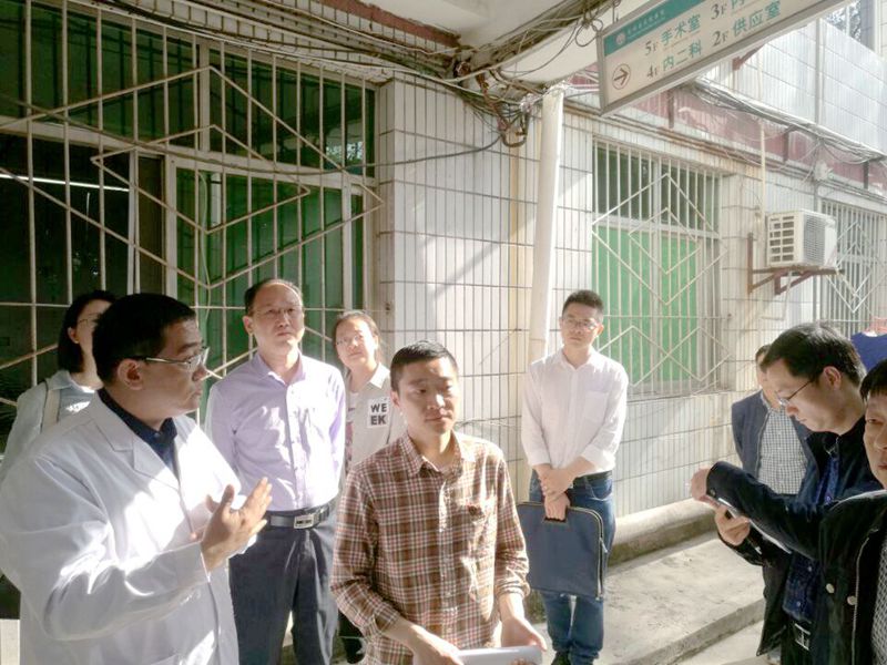 为了解我院内外科业务大楼改建项目的施工情况, 2018年4月17日上午,副县长邹俊彬带领县目督办、重大项目办、发改局、组织部、卫计局等部门相关负责人首先到县卫计局项目办查阅了项目建设的相关资料。随后深入我院施工现场督查,并在听取了黄永生院长的情况汇报后,肯定了医院在项目建设上取得的成绩,同时提出了保安全、保质量、保进度的要求。最后黄院长代表医院表示,将遵照邹副县长的指示精神,如期圆满地完成该项目工作。