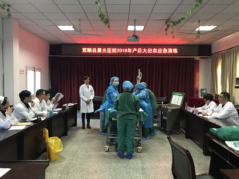 为积极应对全面两孩政策实施,加强我院产科急救工作,有效保障母婴安全,按照《四川省妇产科质量控制中心关于实施产后出血防控预警管理机制的通知》、《富顺县产科急救管理工作方案》等文件要求,11月2日,晨光医院在会议室举行产后出血急救演练,院领导、医教科、护理部、质控部、妇产科、儿科等相关科室医护人员共计30余人参加并观看演练。