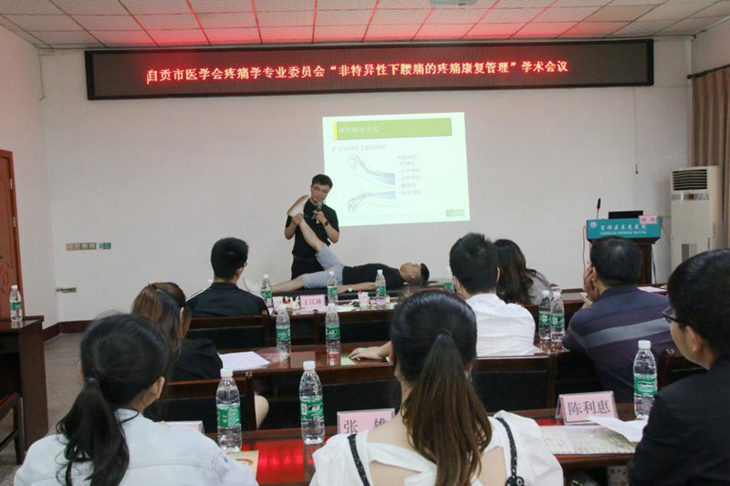 在学术交流会上,西南医科大学附属医院主任医师杨敏、西南医科大学附属医院疼痛康复科主任助理王江林、自贡市第一人民医院康复科主任任凯、自贡市第四人民医院康复&疼痛科教学秘书舒珍、富顺县晨光医院疼痛康复科主任伍肖霞、北京言鼎医疗部PT.训练师刘闯分别做题为《下腰痛的物理治疗》《疼痛转化研究的困境及出路》《PRP在下腰痛患者中的应用》《下腰痛患者的阶梯治疗》《下腰痛的微创治疗》《基于澳式脊柱手法的慢性肌骨疼痛诊疗路径——下肢周围神经症状患者的评估、治疗和训练》。