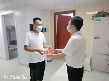 随后,党委书记涂李带队到中昊晨光化工研究院有限公司消防队,慰问消防队的退役军人,送去防暑降温物品和节日的祝福,并叮嘱他们要注意防暑降温、保重身体。中昊晨光化工研究院有限公司党委委员、副总经理伍永强,党委副书记、纪委书记尹忠,对我院的关怀表示了感谢,并对医院长期以来的医疗救治给予了认可。