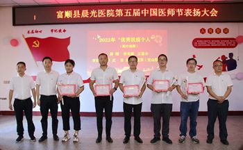 8月19日下午,富顺县晨光医院“8.19医师节”庆祝活动在医院会议室举行。副院长张杰主持活动。医院党委书记涂李致辞,对医师同仁们表示了节日的祝贺,肯定了医护工作者一直以来在医疗救治、疫情防控等工作中辛勤付出和取得的成绩,并提出了四点希望。与会人员观看了医师节短视频《我们是医生》,影片中部分科室医生代表,讲述了医者日常繁杂琐碎的工作以及作为医者的忠诚和决心。医教科科长王勇刚领学了《中华人民共和国医师法》(2022年3月1日正式实施)。抗疫先锋代表虞朝位、优秀医务工作者代表聂涛分别通过亲身经历和感受分享了工作经验、工作事迹。新入职医师代表魏小娟分享了工作感想。活动表扬了2021-2022年度在疫情防控、临床一线工作中表现突出的医师,并对2022年“病历书写”评选活动中获奖的医生颁奖。