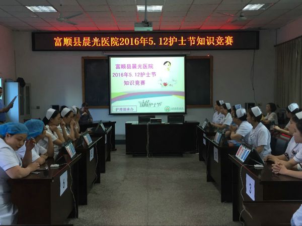 为纪念“5.12”国际护士节,弘扬南丁格尔救死扶伤的人道主义精神,充分激发我院广大护理工作者全心全意为患者服务的工作热情,我院于2016年5月11日下午,举办了护理知识竞赛活动。赛前分管院长蒋君志发表了热情洋溢的讲话,首先肯定了护理工作在医院医疗工作中的重要地位和开展温馨医院以来取得的成绩;其次通过本次竞赛,旨在进一步提升护理知识水平。第三,对获得自贡市“最美护士”的张玲悦同志表示热烈祝贺。同时希望护士们赛出风格、比出水平。