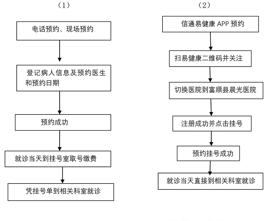 三、预约方式:电话预约、现场预约、诊间预约、出院病人复诊预约、短信预约、院内自助机预约、信通易健康APP。