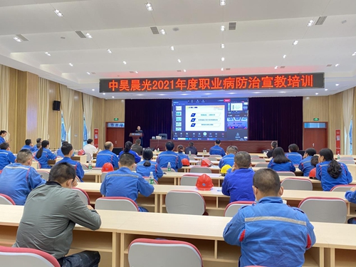 培训前,中昊晨光化工研究院有限公司副总经理伍永强介绍了两家单位的历史渊源和友好往来,表达了公司对职工及其职业病防护的重视和关心,并希望与会职工要认真学习,将所学健康知识传达到每一位职工,进而增强全体职工的健康安全防范意识。