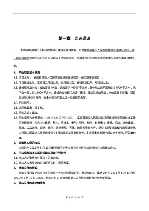 富顺县第三人民医院整体迁建建设项目——施工图审查项目比选文件