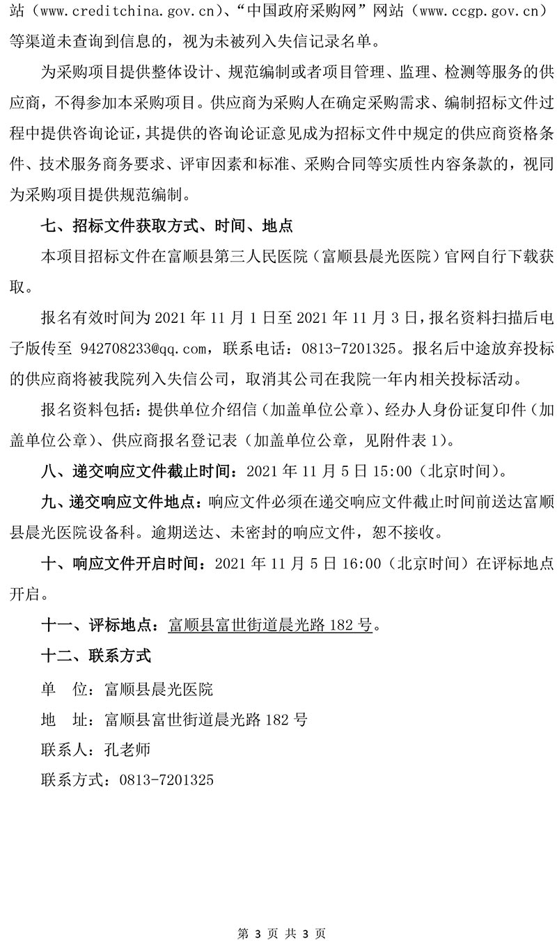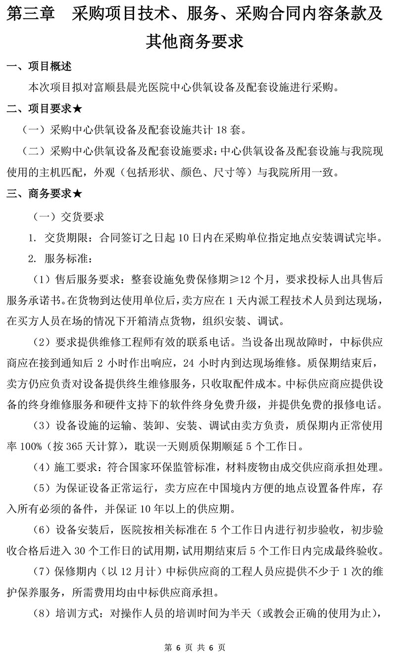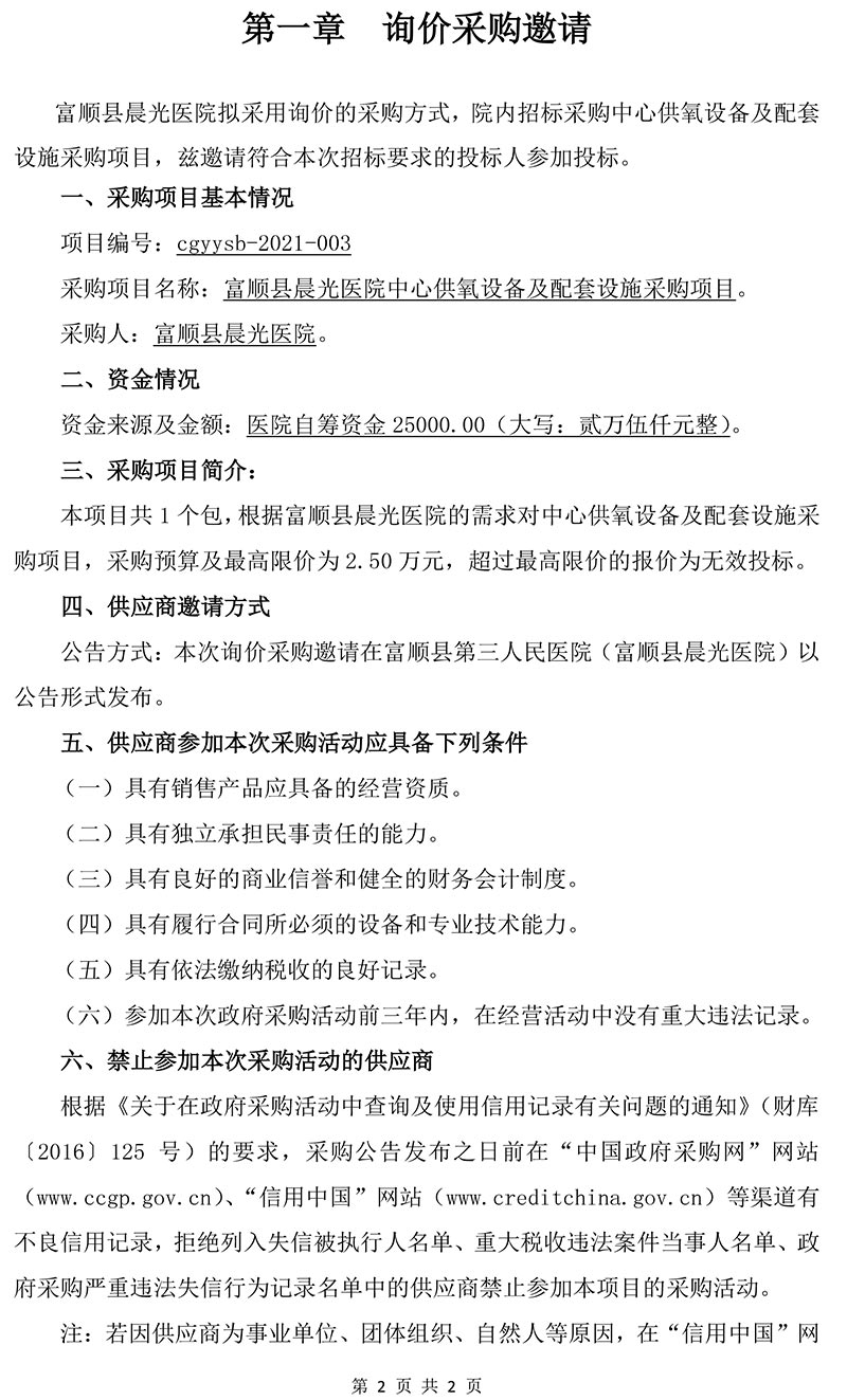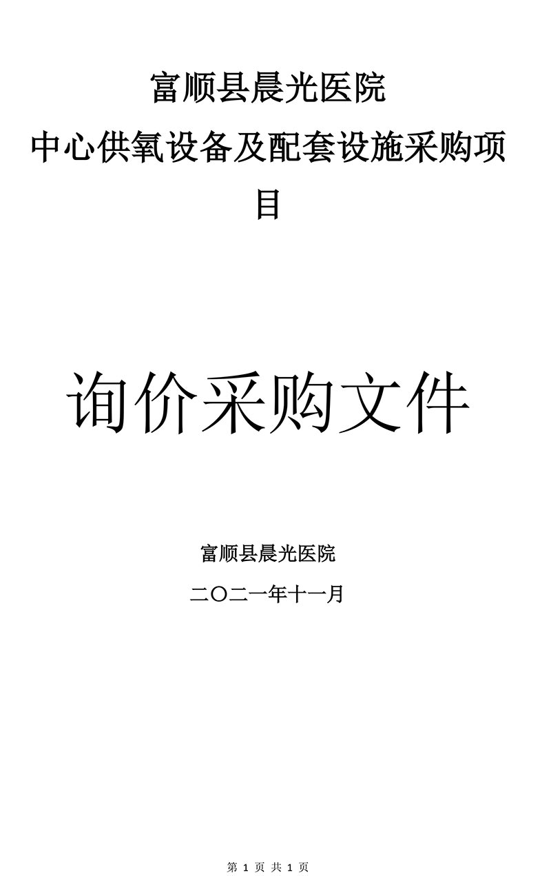 富顺县晨光医院中心供氧设备及配套设施采购项目询价采购公告