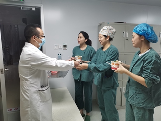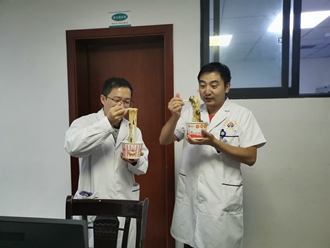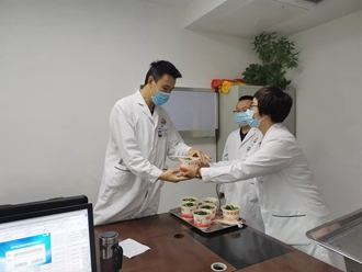 三、吃“国庆面”。10月1日上午,副院长涂李、纪检监察室主任曾恒礼带队为医务人员送“国庆面”。