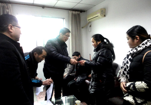 为让医院特殊职工(失独职工、残疾军人以及军烈属)和帮扶家庭过上一个祥和、温馨的农历年,我院领导班子在院长卓小川的带领下,于2016年2月5日上午,慰问看望了医院失独职工、残疾军人以及军烈属,并深入社区看望帮扶对象,为他们送去了节日的祝福和慰问金,把党和政府的关怀送到群众中,让群众感受到医院和社会大家庭的温暖。
