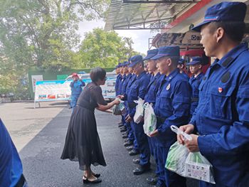 随后,党委书记涂李带队到中昊晨光化工研究院有限公司消防队,慰问消防队的退役军人,送去防暑降温物品和节日的祝福,并叮嘱他们要注意防暑降温、保重身体。中昊晨光化工研究院有限公司党委委员、副总经理伍永强,党委副书记、纪委书记尹忠,对我院的关怀表示了感谢,并对医院长期以来的医疗救治给予了认可。