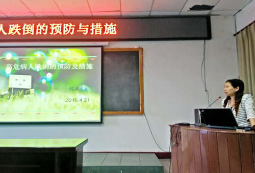 本次培训由护理部主任付永玉主讲,以“高危病人跌倒的预防及处理措施”为题,就跌倒的定义、跌倒的高危人群、跌倒的危害、发生跌倒的因素、高危跌倒病人预防及处理措施、护患之间有效沟通、密切配合的重要性等内容,以生动的临床实际案例进行了讲解,现场互动气氛良好。